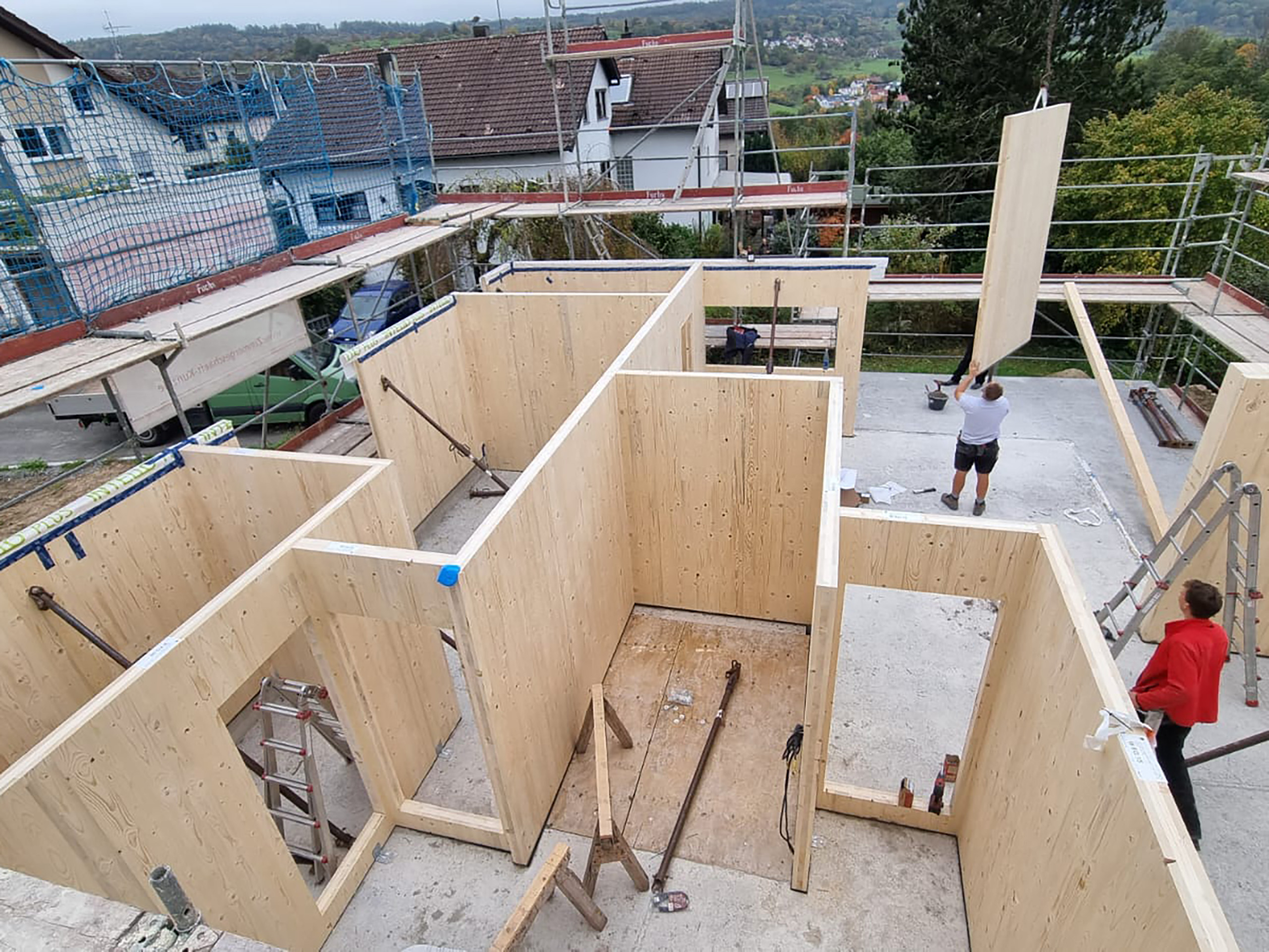 In kürzester Zeit entstand dieses wunderschöne Einfamilienhaus – gebaut aus Brettsperrholz-Decken und -Wänden aus Vollholz.