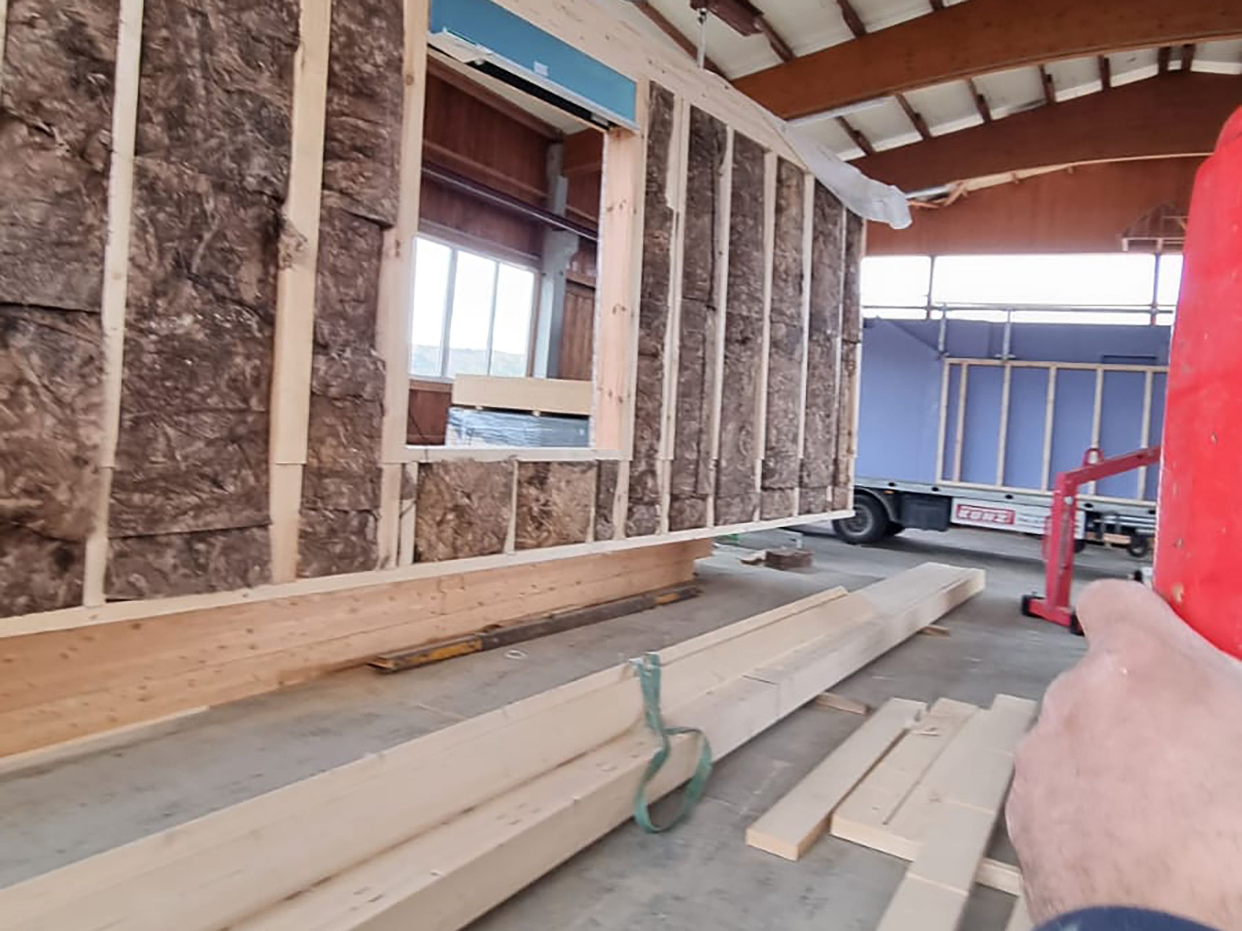 Dank moderner Vorfertigung läuft alles wetterunabhängig, präzise und effizient – jedes Element wird sorgfältig vorbereitet, gedämmt und montagefertig gemacht.