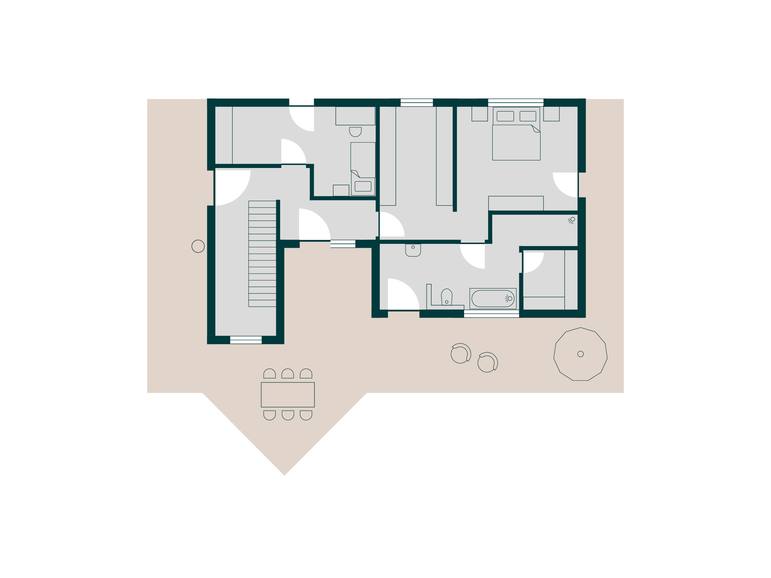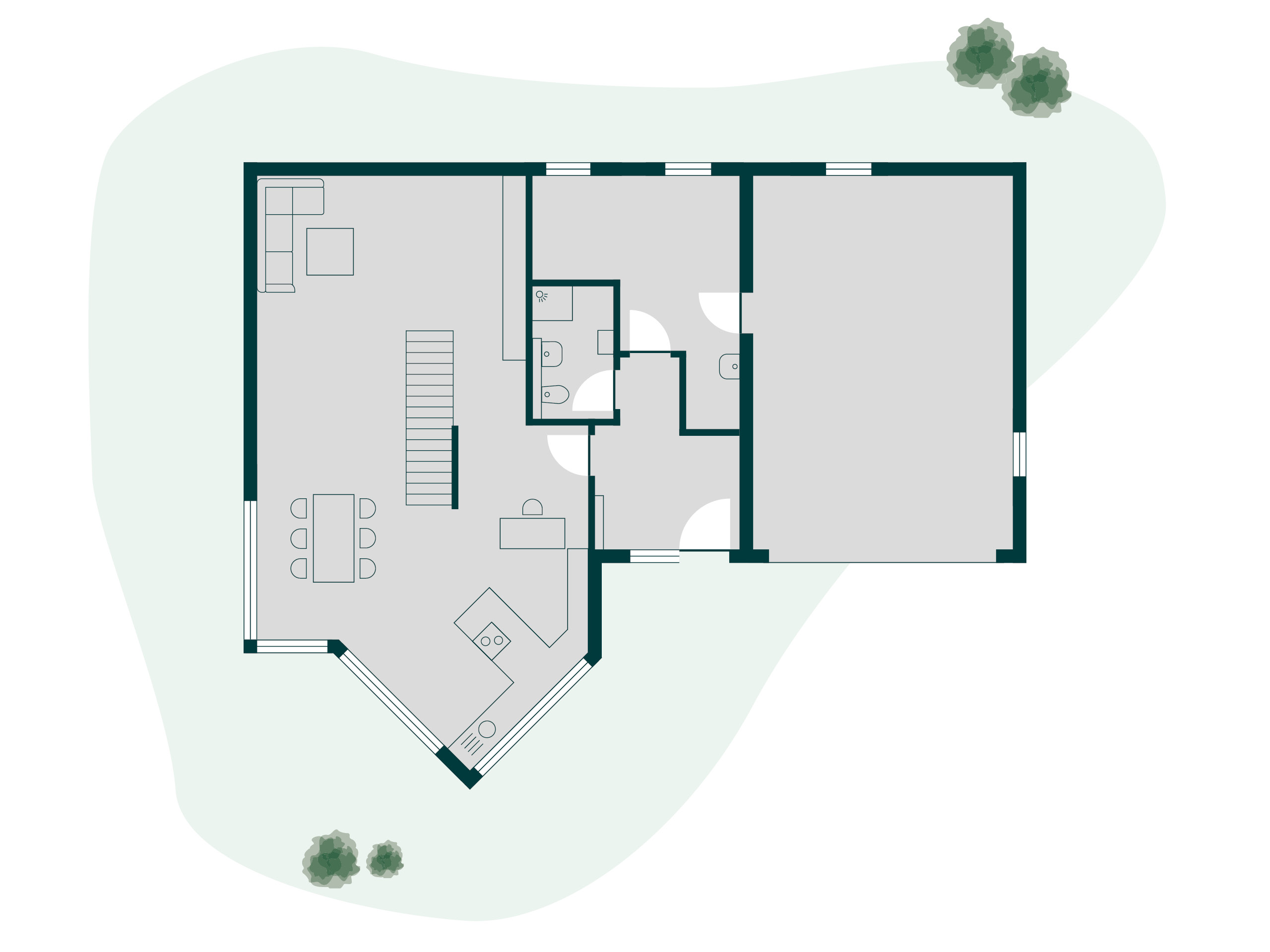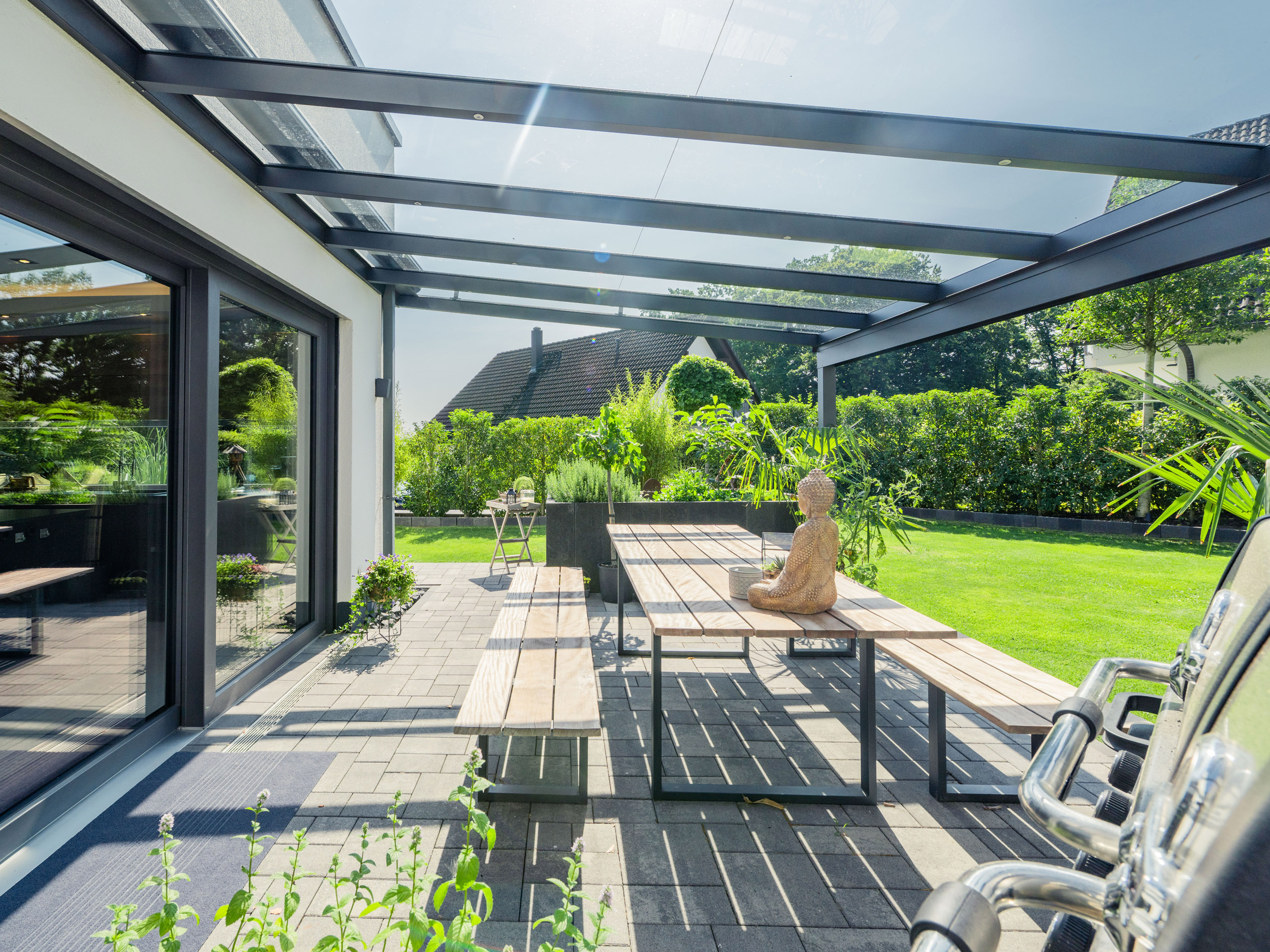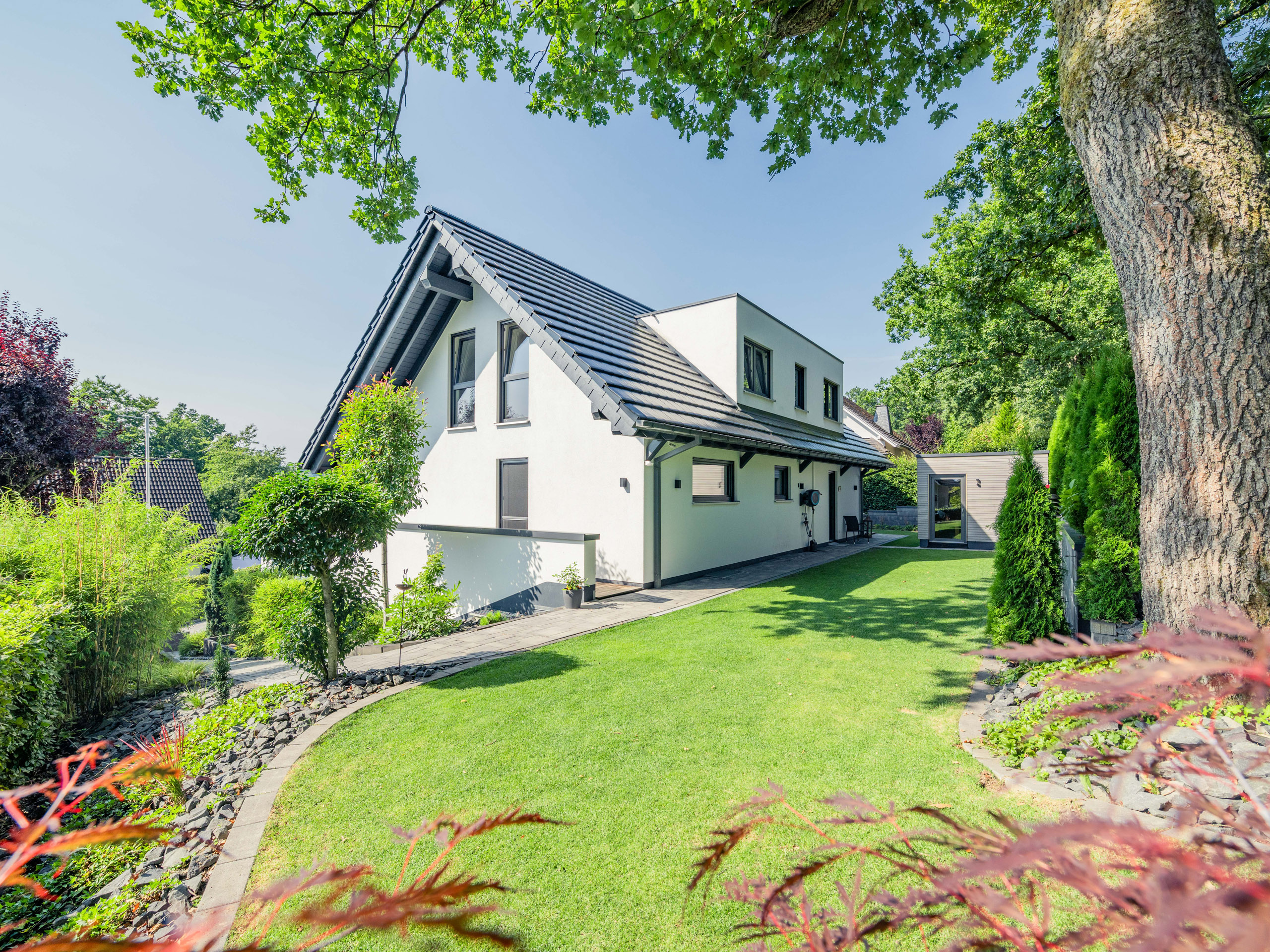 Perfekt ins Grundstück eingepasst.